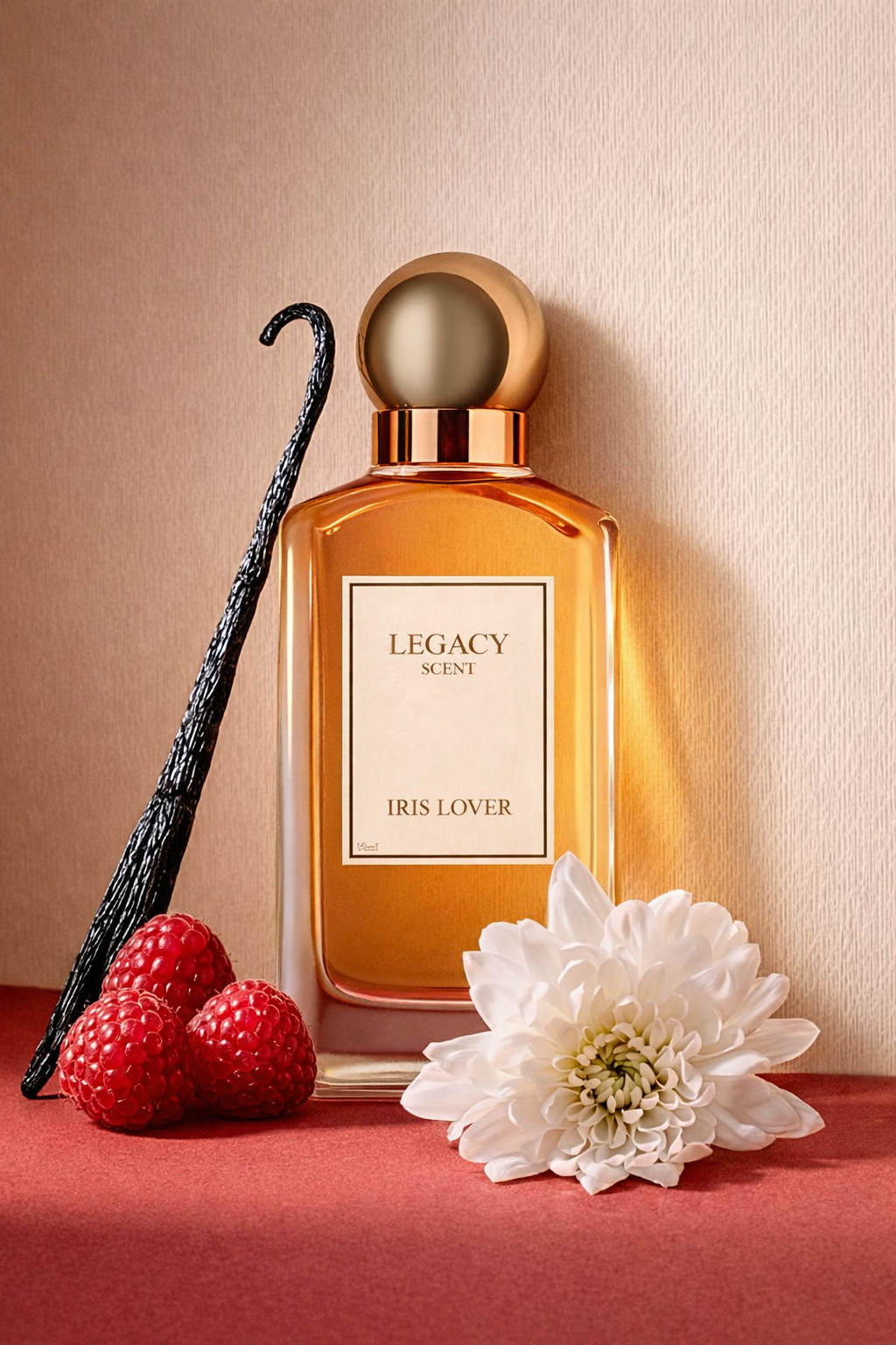 A soft bloom of iris touched by berries and white flowers, warmed by vanilla and cashmere wood, creating a pure, warm, and elegant essence.